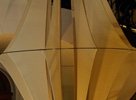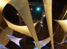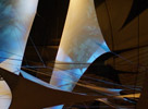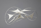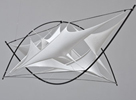 'heeling'Krängung (engl.: heeling), ein charakteristisches Phänomen des Segelns - sichtbar gemacht in dynamisch, abstrakter Form. Die Geometrie zweier sich durchdringender Dreiecksflächen kann auf die elementare Grundform einer Segelyacht zurückgeführt werden. Die Decksfläche und senkrecht dazu, die Segelfläche im Zusammenwirken mit der Lateralfläche, werden gemeinsam in die Diagonale gekippt. in dynamischer Schräglage spannen sich die Dreiecke auf und verdichten sich zu skulpturalen Kompositionen. boot Düsseldorf 2004 /2