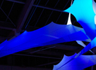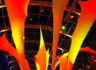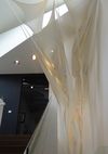 Zum Mitteldeutschen Olympiaball am 06.03.2009 in der Glashalle der Neuen Messe Leipzig entstand die schwebende Installation 'Feuerblume' , 2009, 15 x 38 x 28 m, Baumwolle und PP- Schnüre 'Feuerblume', Glasshalle Leipzig 2009/2