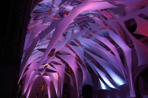 Zur MiniArttextile Como 2009, Thema: 'e lucean le stelle', entstand in der Absis der Chiesa di S. Francesco, die Installation:'orbita in luce' (14x17x10m). 26.09.2009 bis 15.11.2009 www.miniartextil.it 28.01.2010
