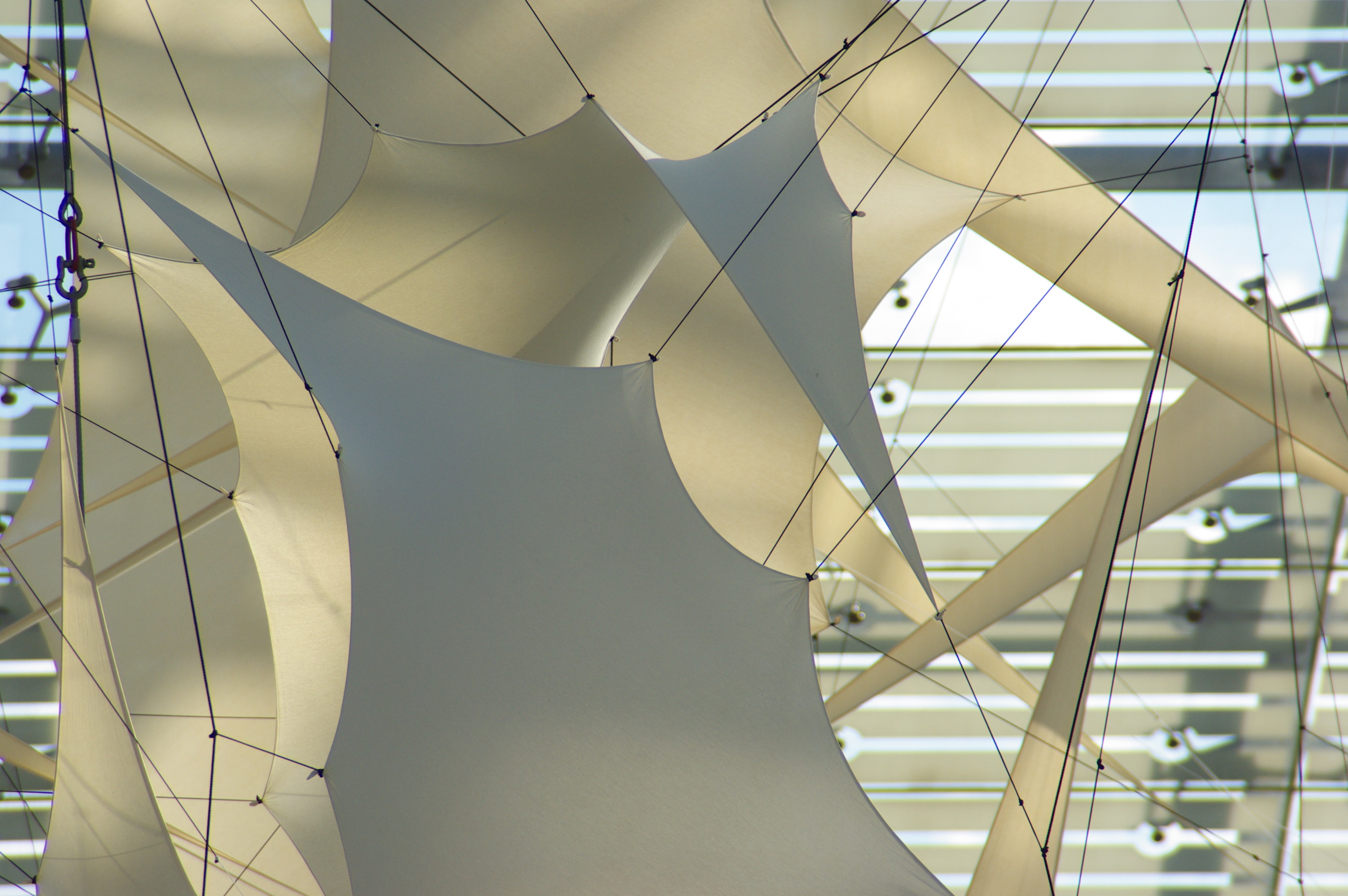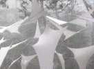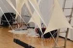 Wie ein Flügelschlag entfalten sich die fragilen Konstruktionenim Raum. Auf der Spitze balancierend, scheinen die weißen Flächen zu schweben. Heel over - Kräfte werden sichtbar - Bewegung wird spürbar. Bekannte Wahrnehmungsmuster des Segelns verbinden sich intuitiv mit den skulpturalen Tuchformen zu einem neuen Raumerlebnis. Offene begehbare Räume im Dazwischen laden zum Verweilen ein. 8. Biennale Havanna, Kuba, 2003