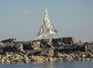 ...Näherkommend öffnen sich Tore, Lücken und Durchgänge. Der Raum öffnet sich und neugierig gewordene Expedisten werden verführt ins Innere zu treten. Im Dialog von Natur, Kunst und Architektur entfaltet sich ein vielfältiges Wechselspiel von Raum, Licht und Schatten. Ein Ort zum Innehalten, Verweilen und Schauen - eine Kathedrale des Lichts. boot Düsseldorf 2004