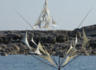 'Haken', 2005, 16x24x8, Vogelfrei, StattParadies, auf der Bastion des Schlosses zu Darmstadt, September 2005 'crossing', 2005, Stocksee