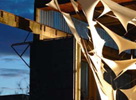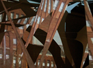 Cortadura Konzept für eine Installation zur 8. Biennale Havanna 2003 Die Vision Innehalten, Zeit gewinnen und den Gedanken Flügel verleihen. Wie Zwei Klingen durchschneiden die Dreiecksflächen den Raum, werden zu Tragflächen von Licht und Schatten, steigen mit den Bäumen empor und leiten die Blicke hoch über die Mauern hinaus. Dazwischen entsteht eine Folge von offenen und überspannten Räumen, die den Betrachter zum Durchschreiten und entdecken einladen. 8. Biennale Havanna, Kuba, 2003 /2