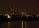 Vom 6. bis 23. November 2008 fand die 2. Auflage des Projektes Flusslicht am Reiherstieg im Hamburger Hafen statt.Die Besucher können die Ausstellung ausschliesslich mit speziell eingestzten Barkassen besuchen. Kurator Rolf Kellner 'Bake', 2008, 8,5 x 8 x 8 m, Baumwolle, PP-Schnüre, Alu Licht 12 sec. Dunkel 4 sec. Flusslicht 2, Hamburg 2008