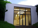 Natur; Kunst und Architektur verbinden sich zu einem Ort lebendiger Leichtigkeit, im Kontrast zur Massivität der Jahrhunderte alten Festungsmauern.Dimensionen: Grundfläche ca. 45 x 24 m, Höhe bis ca. 12 m 'Lichtkeil', Städtisches Museum Gelsenkirchen, 2000