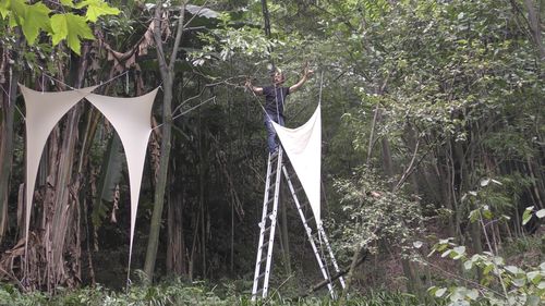 In Zusammenarbeit mit akzente raumbegrünung, Ratingen und der VHS Essen. Aufbau der Tuchinstallation.www.akzente-raumbegruenung.de , www.vhs-essen.de www.essengreen.capital GRowEEN, ein Projekt von Jens J. Meyer im Rahmen der Grünen Hauptstadt Europas – Essen 2017.