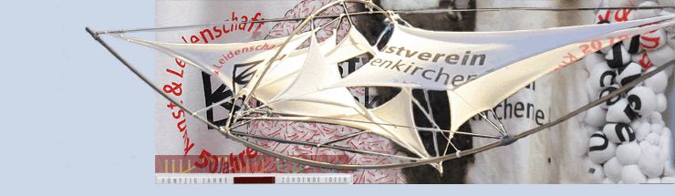 Luftkissenflug – WeinbergwanderungEine mobile Vernissage mit schwebender Skulptur Ein großes Luftkissen schwebt über dem Weinberg, Ein weithin sichtbares Zeichen lenkt die Aufmerksamkeit auf sich, macht neugierig, zieht Betrachter an. Als ein wanderndes Zeichen nicht ortsgebunden – sondern frei schwebend- bewegt sich die Skulptur mit den Menschen entlang des Pfades, markiert die wandernde Vernissage die an jedem Weingut Station macht. Hier sind die Künstler anwesend Hier wird gesprochen, diskutiert und philosophiert über Den Wein - Die Kunst - Das Leben - Die Welt Ziel ist es, die Bewegung in die künstlerische Arbeit zu integrieren und so den gesamten Pfad als Ort der Kunst einzubeziehen. - Kunst in Bewegung - Die mobile Vernissage - Eine poetische Beschreibung der Landschaft und des jeweiligen Ortes Die Uraufführung des ‚Luftkissenflugs’ fand am 15.September 2002 zur kulinarischen Weinbergswanderung in Siebeldingen / Pfalz statt. |